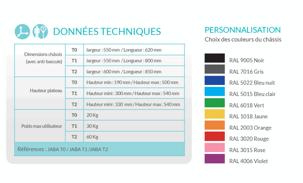 Le JABA est un support roulant conçu pour une utilisation