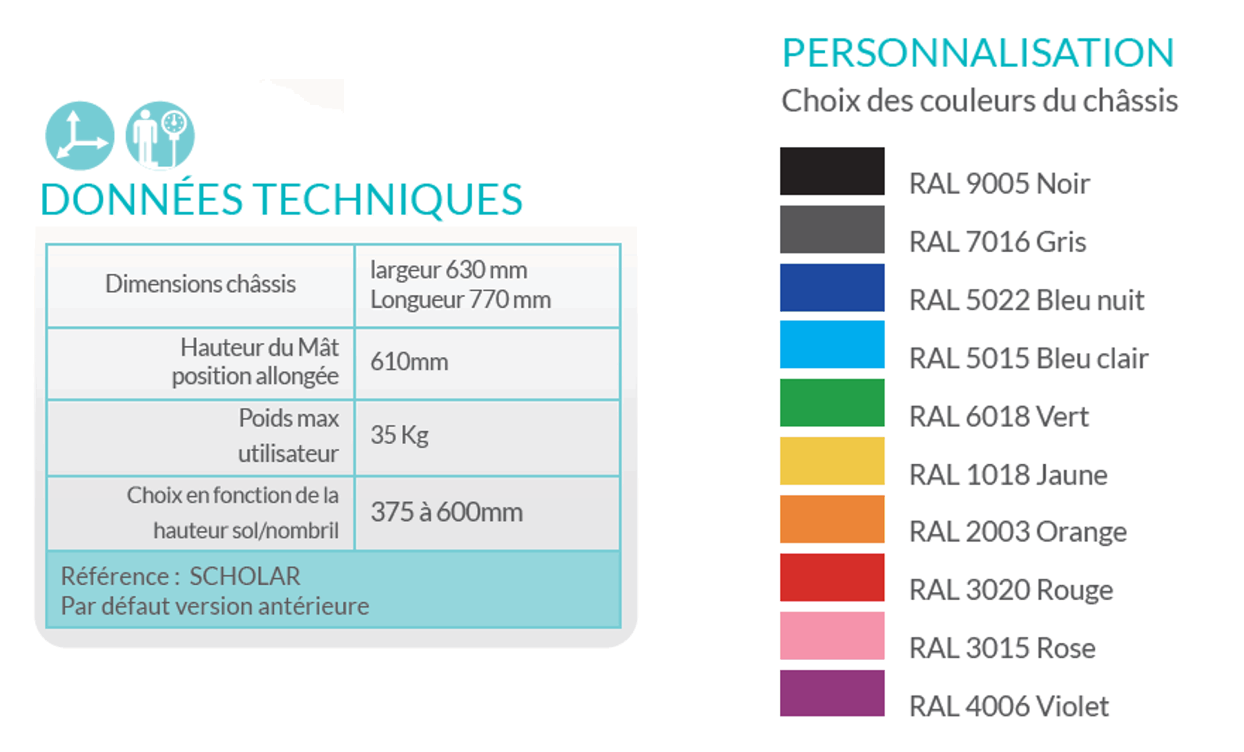 Le SCHOLAR est une version à 3 branches de support roulant de verticalisation. Cette