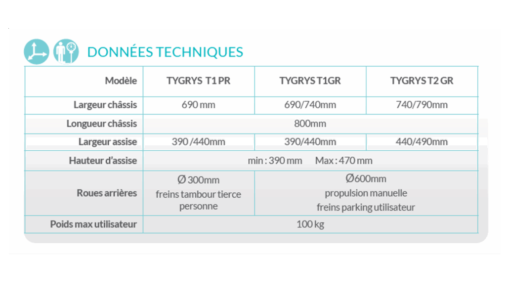 Le TYGRYS est un socle roulant pour corset-siège conçu pour s’adapter au niveau d’autonomie du patient